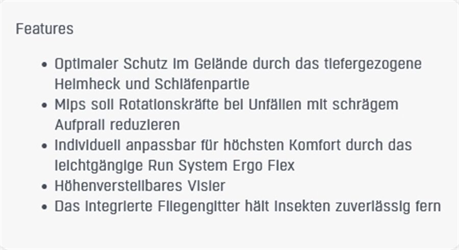 Optimaler Schutz im Gelände durch das tiefergezogene Helmheck und Schläfenpartie