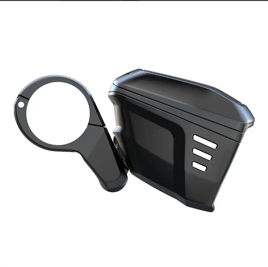 hochwertiges Aluminiumgehäuse mit rückseitigen Anzeige-LEDs für Fernlicht