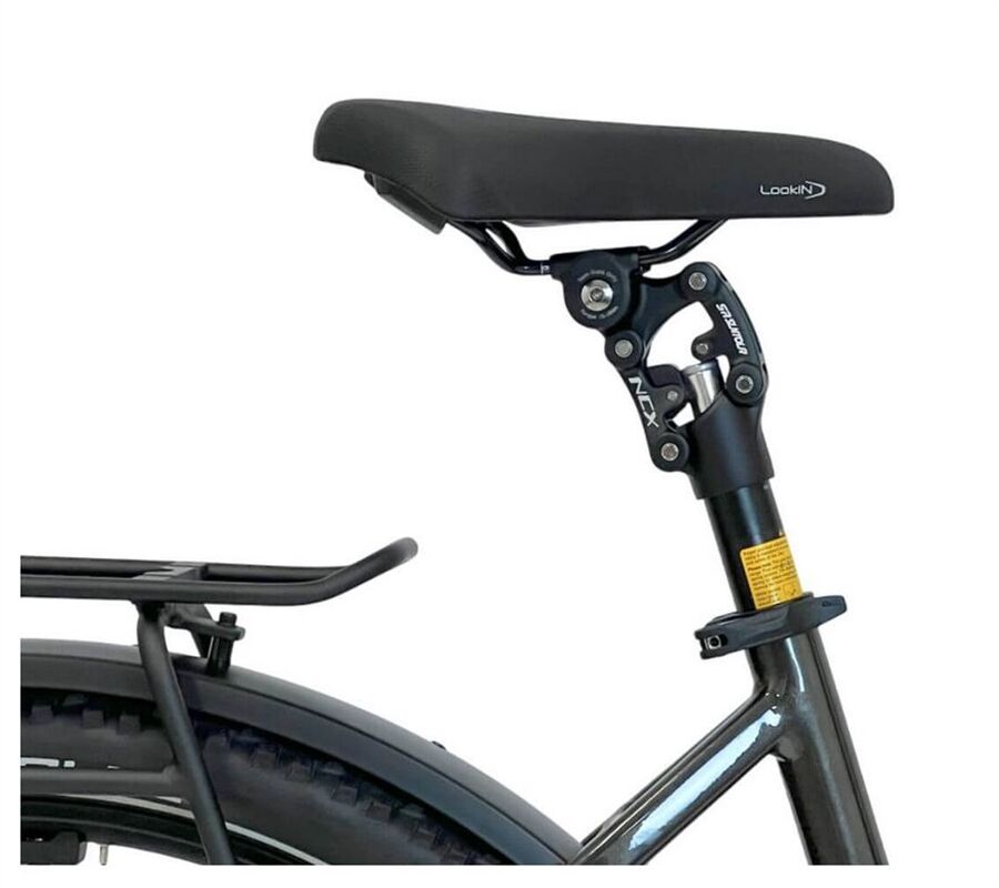 Zudem ist die Sattelstütze des E-Bike gefedert,