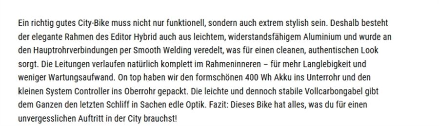 Deshalb besteht der elegante Rahmen des Editor Hybrid auch aus leichtem,