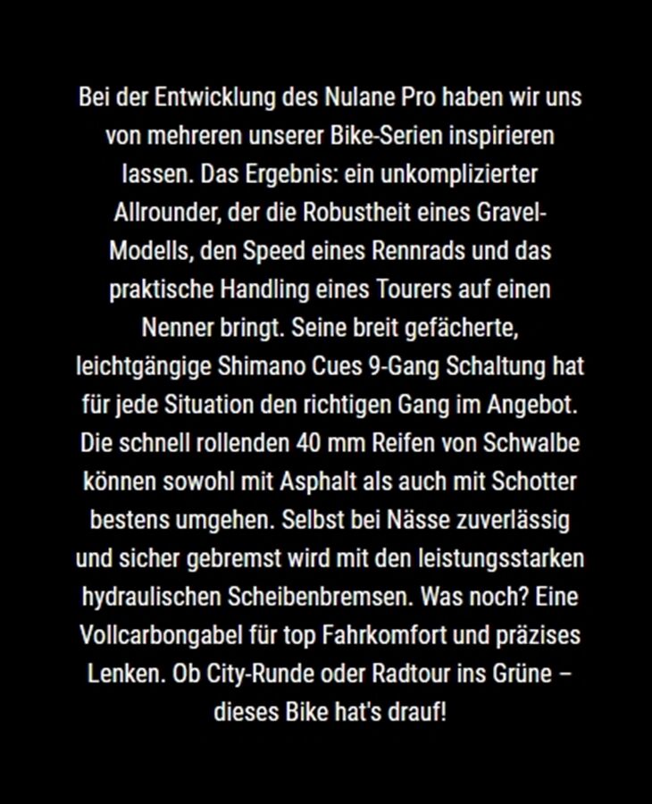 Technische Daten für Gravel G Nulane Pro 53 cm 9 Gang 10,8kg 2026