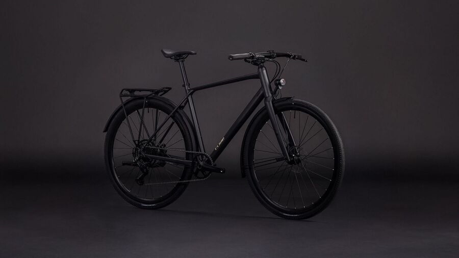 Gegenteil. Sein Rahmen ist serienmäßig ausgestattet mit Schutzblechen, Heck-Gepäckträger,