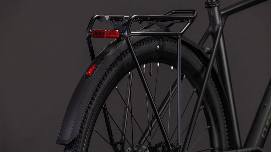 Gegenteil. Sein Rahmen ist serienmäßig ausgestattet mit Schutzblechen, Heck-Gepäckträger,