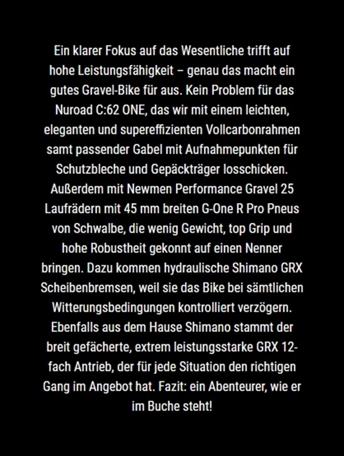 Artikeldetails für CUBE Gravel Nuroad C:62 ONE12Gang GRX XL 9,3kg 2026 (blackline)