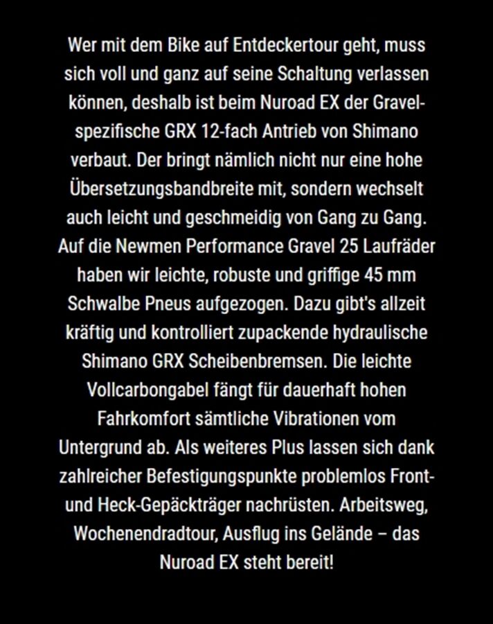 Technische Daten für Gravel Nuroad EX L 12 Gang GRX 2026