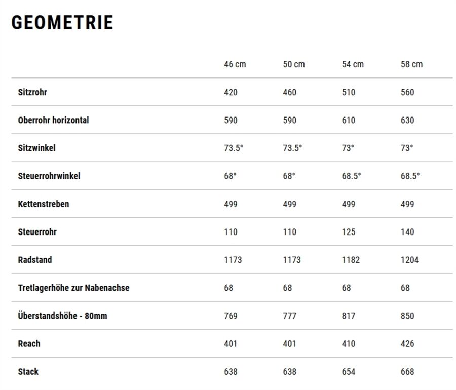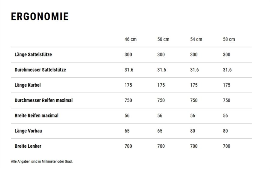 Größe Trapez:46cm, 50cm, 54cm, 58cm
