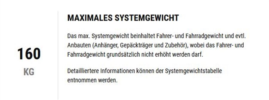 Max. Systemgewicht 160 kg