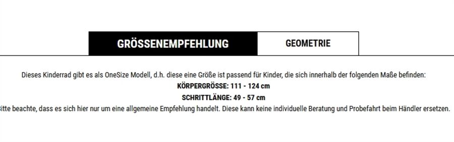 Dieses Kinderrad gibt es als OneSize Modell,