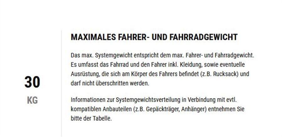 Max. Fahrergewicht 30 kg
