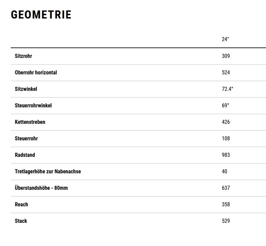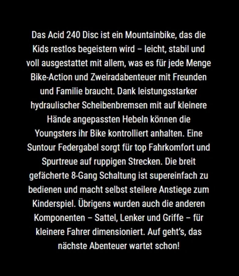 Technische Daten für MTB Acid 240 Disc 24" 8 G 11,8kg 118-139cm 2026