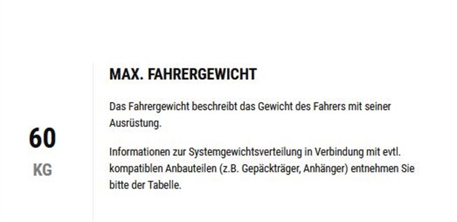 Max. Fahrergewicht 60 kg