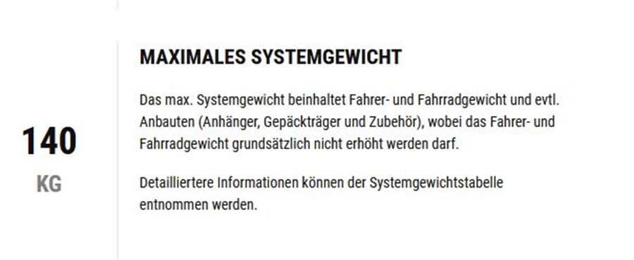 Max. Systemgewicht 140 kg
