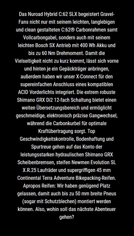 Technische Daten für Nuroad Hybrid C:62 SLX SX31400X M 12-Di2 2026