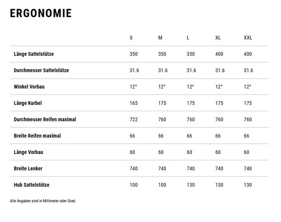 Größe Classic: Size Split: 27.5: S // 29: M L XL XXL