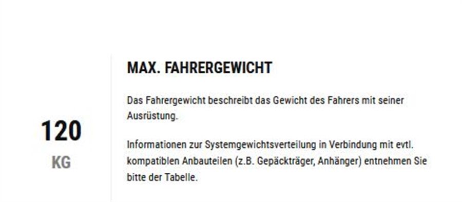 Max. Fahrergewicht 120 kg