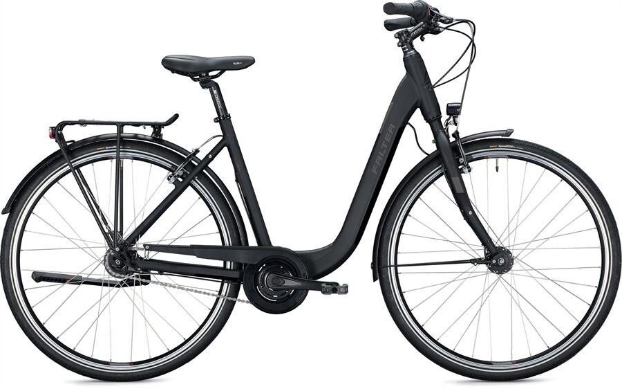 Schnelle Reifen, eine 7-Gang-Schaltung, eine helle Beleuchtung und einen schicken Systemgepäckträger.