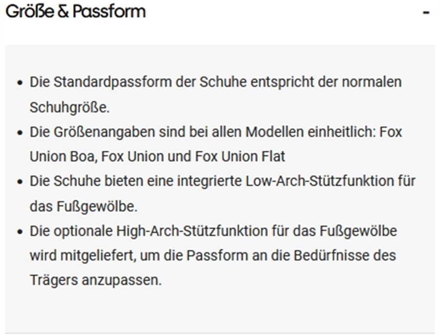 Die Standardpassform der Schuhe