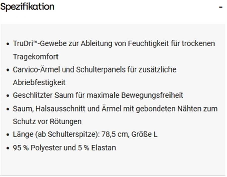 Carvico-Ärmel und Schulterpanels für zusätzliche Abriebfestigkeit