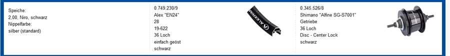 Artikeldetails für HARTJE Hinterrad 8Gg Alfine Di2 36 Alex24 (schwarz/schwarz/schwarz)