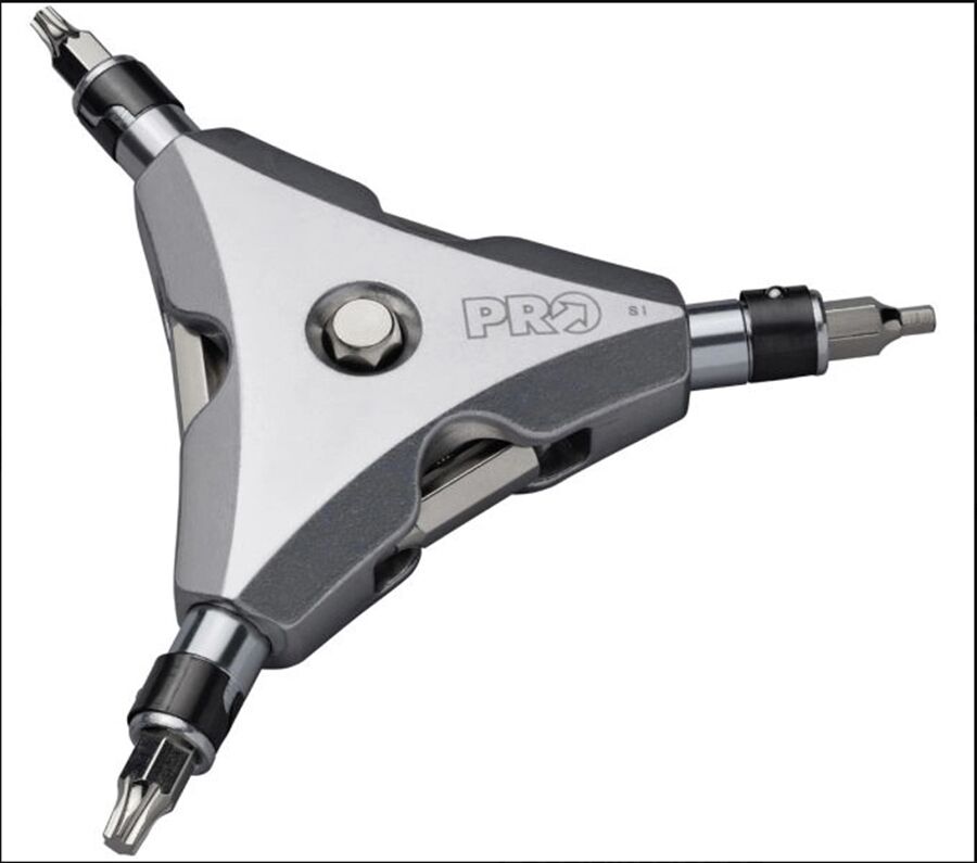 Der PRO Team Y-Dreiarmschlüssel verfügt über austauschbare Bits,