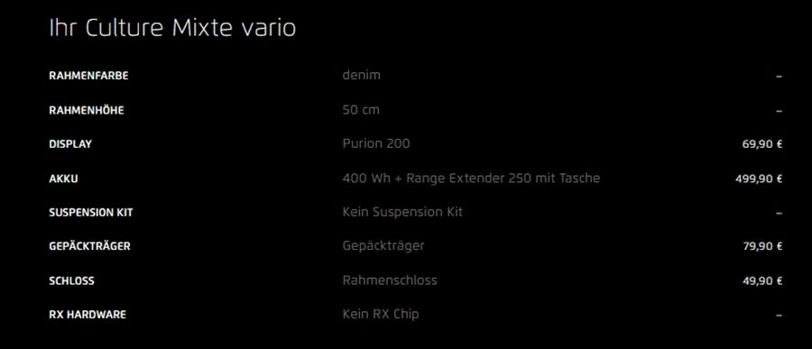 Artikeldetails für Riese&Müller Culture Mixte Vario 50cm SW 400WH Sonder (denim)