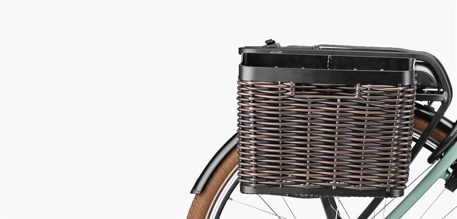 Verleihen Sie Ihrem E-Bike einen neuen Charme und vor allem Nützlichkeit. Der robuste und wetterfeste Frontkorb im edlen Rattanlook vervollständigt das Bild eines modernen Hollandrades. Er besitzt ca. 12 l Volumen und kann mit bis zu 3 kg beladen werden.