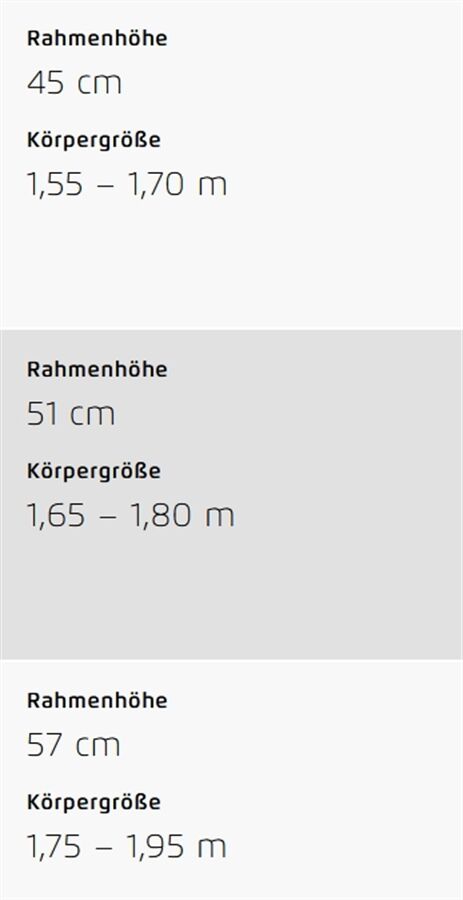 Rahmenhöhe [cm] 45 cm*; 51 cm*; 57 cm*