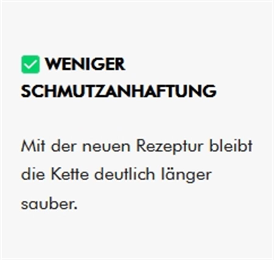 Essentiell wichtig ist, die Kette regelmäßig zu säubern und zu entfetten – z.B. mit unserem Antriebsreiniger. So entfernst du nicht nur altes Öl, sondern auch Staub, Sand und Verschmutzungen von deiner Kette.