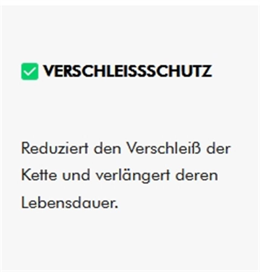 Es ist jedoch ratsam, die Kette regelmäßig zu überprüfen und die Schmierung aufzufrischen, wenn die Kette Anzeichen von Trockenheit oder Verschleiß zeigt.