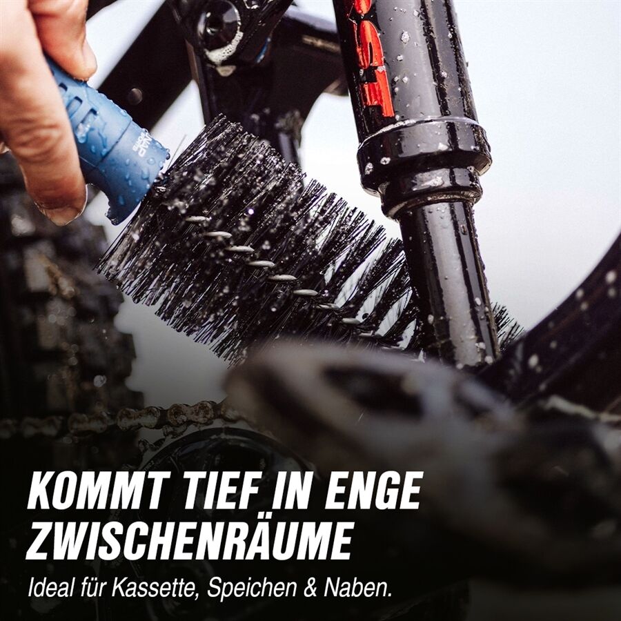 Lange Ritzelborsten reinigen perfekt die Zwischenräume im Ritzelpaket.