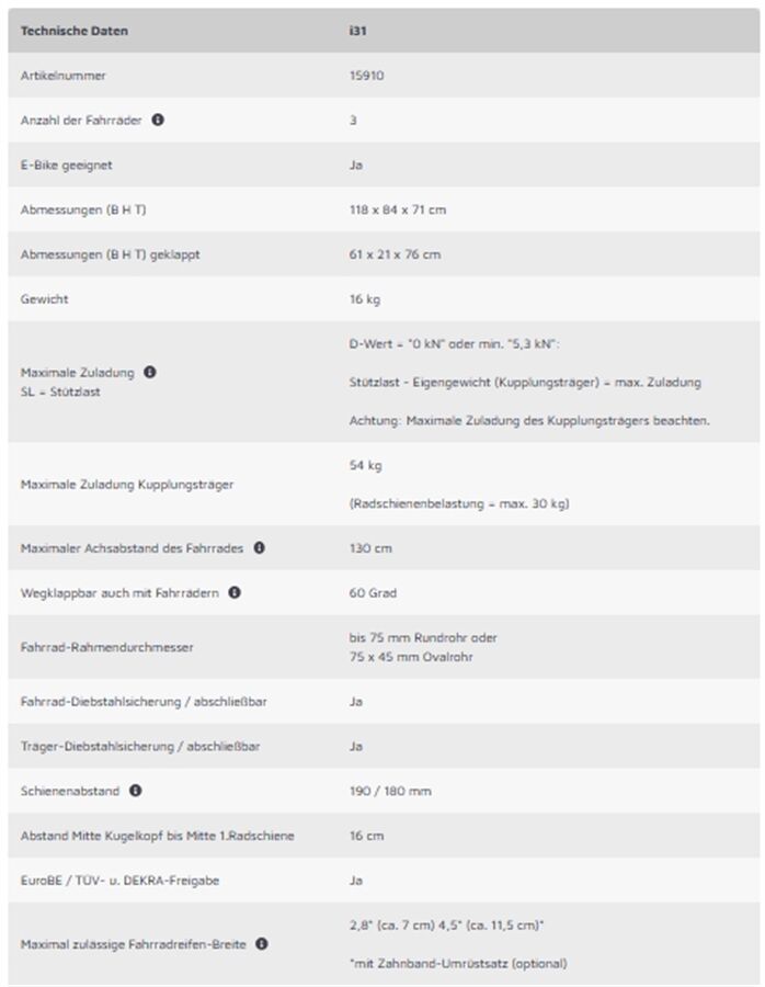 Artikeldetails für Uebler Heckträger i31 3 Räder 60° 136kg Zuladung54kg (.)